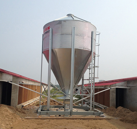 自動(dòng)食槽(箱) 集約化和現(xiàn)代化養(yǎng)豬從哺乳仔豬的補(bǔ)飼直到斷乳后的幼豬、后備豬、繁殖母豬以及生長肥育豬均采用自由采食的飼養(yǎng)方式,因此,需要不間斷供料的自動(dòng)食槽。自動(dòng)食槽就是在食槽的上部安放一個(gè)飼料貯存箱,貯存一定量的干粉料或顆粒料,在豬采食時(shí)貯存箱內(nèi)的飼料靠重力不斷流入食槽內(nèi), 供豬采食。自動(dòng)食槽的優(yōu)點(diǎn)是,自動(dòng)限制落料,吃多少落多少,不撒漏飼料,干凈衛(wèi)生,自由采食時(shí)有間隔欄限位,豬只不爭(zhēng)斗,有利于生長發(fā)育,便于實(shí)現(xiàn)機(jī)械化和自動(dòng)化添料,提高勞動(dòng)效率。常用的自動(dòng)食槽有長方形和圓形兩種,采用長方形者居多,每一種又根據(jù)豬只的大小做成幾種規(guī)格。①長方形自動(dòng)食槽。分單面和雙面兩種。單面具有靈活性,但占地面積大,投資較多。雙面的節(jié)約投資,管理也比較方便。長方形自動(dòng)食槽常用鍍鋅鐵板或冷軋鋼板制造, 也可用半金屬半鋼筋水泥或全鋼筋水泥制造。半金屬半鋼筋水泥自動(dòng)食槽的底槽、側(cè)板用鋼筋水泥部件,其他部分為金屬結(jié)構(gòu)。用全部或部分鋼筋水泥件做的自動(dòng)食槽造價(jià)低,壽命長,但較笨重。②圓形自動(dòng)食槽。制作原理與長方形的基本相同,飼料桶可以上下移動(dòng)和轉(zhuǎn)動(dòng),以便控制和促進(jìn)飼料流落。通常,自動(dòng)食槽的圓桶用不銹鋼板制造,而底座則用鑄鐵或鋼筋水泥制造。